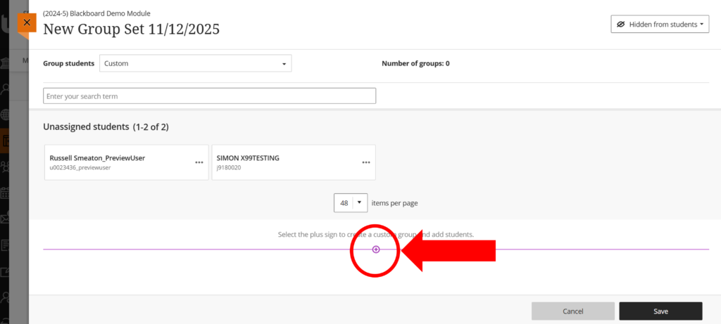 - Custom – this option allows the Instructor to allocate students to individual groups