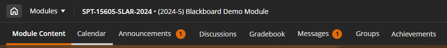 Gradebook – Provides access to all the assessed items with a due date in the module. From here, you can see any submission you may have made, and any score/feedback your tutor has left you.